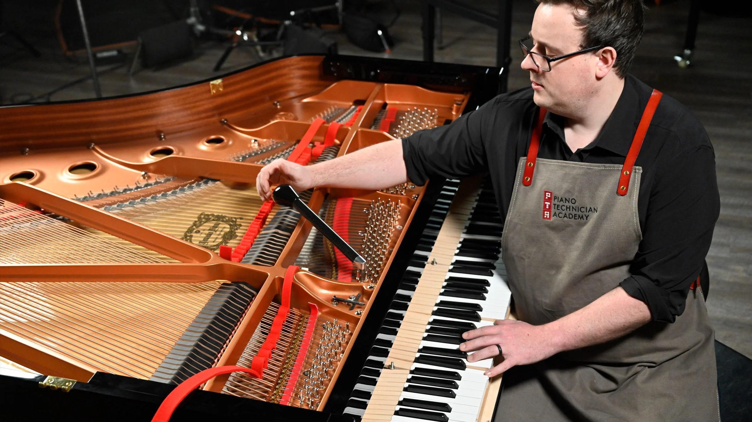 - Aural tuning is done with a temperment strip (to mute 2/3 of the strings). Once the un-muted note is tuned, the temperment strip is removed and the other 2 strings are tuned to match the in-tune one